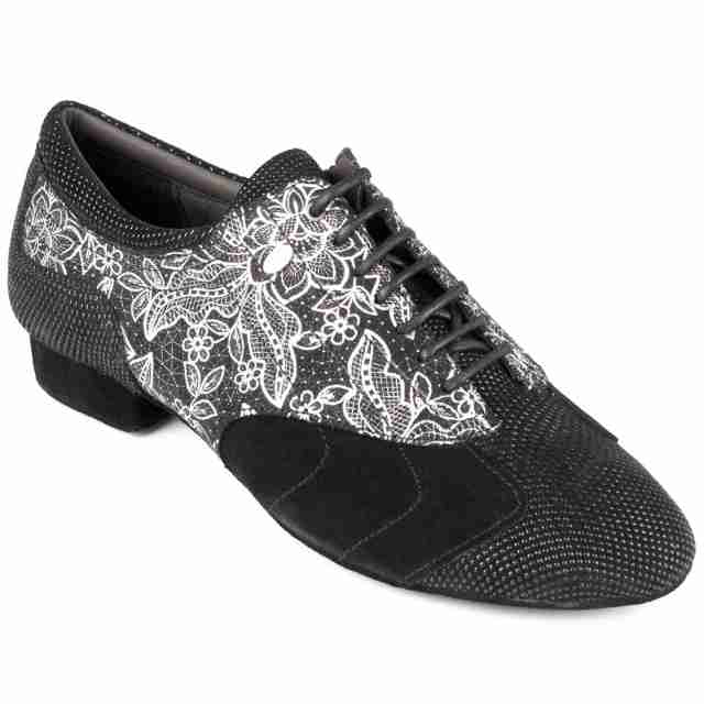 Zoals de naam ‘Fantasy’ al doet vermoeden is deze dansschoen van Portdance versierd met een betoverend zwart-wit bloemenpatroon. Dit wordt gecombineerd met een glanzend zwart stippen patroon met 3D textuur. De zwarte suède vleugels balanceren de twee opvallende texturen uit en zorgen voor een bijzonder geheel.