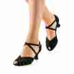 Deze Werner Kern Sonia dames dansschoenen met strass hebben een peeptoe neusje wat betekent dat er een vrij kleine opening is voor de tenen aan de voorkant. De rest van de voorvoet wordt prettig omsloten en beschermt door zwarte suède versierd met strass steentjes. Deze strass steentjes geven de dansschoenen een feestelijk tintje.